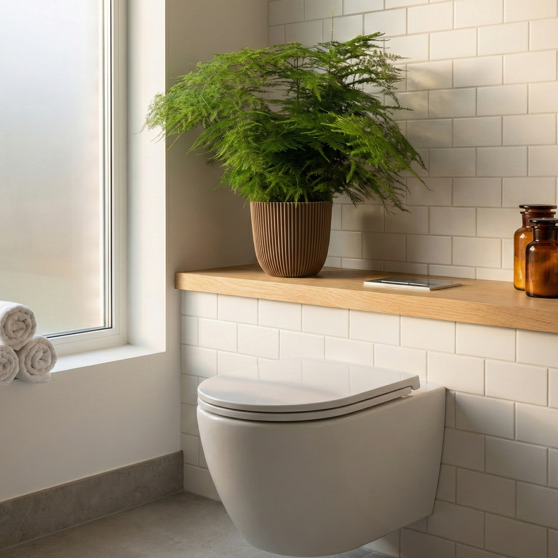 This plant is perfect for the bathroom because it brings instant spa calm and natural charm with minimal effort. His feathery fronds make a graceful statement, while gently refreshing your air daily. Though he’s not safe for curious pets or children, he’s ideal for stylish, adult-friendly spaces. Low‑maintenance looks, air‑cleansing vibes, and soft presence—Sage was made for this room!